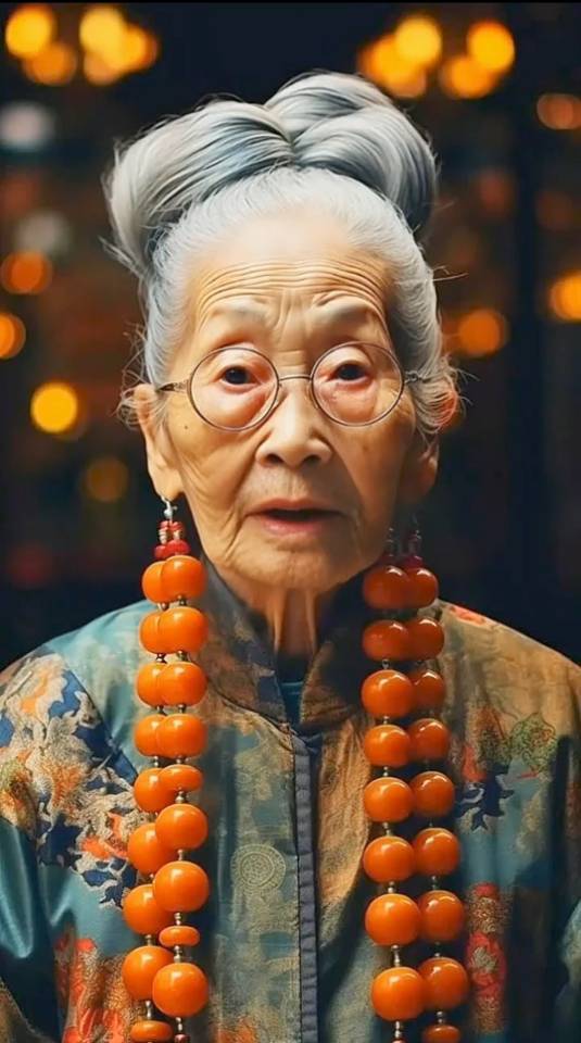 一个漂亮老婆婆,盘发头,满头白发,身穿麻布旧衣裳,中国风范,高高的鼻梁,拄着龙头拐杖,盘坐门前,正面全身照,正视前方,高清,白天,亮堂堂,背景屋前,超高清