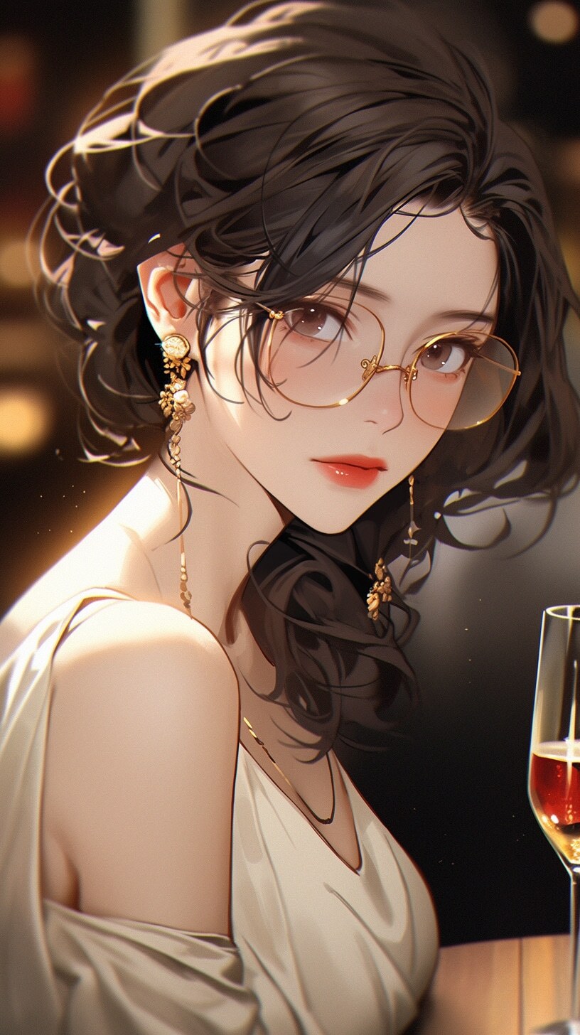 (少女)(御姐),(黑发,红唇,动态动作)(帅气,凌厉) (金丝眼镜),(动态角度),(美丽凌厉的眼睛),(过度曝光),(水晶质地的食物),(完美),(精致的五官),(近景面部肖像(侧颜)),(黑发),(精细的眼部描写),,((餐厅,食物))(全身),酷潮,((金丝眼镜)),飘逸的长发,凌乱的头发,冷酷的表情,深邃大眼睛,超细节,半身照,露肩衣服,披肩西装,露锁骨,((氛围光))),电影光,发光,侧光,酒吧背景,(大师之作),(杰作),(最高画质),(细节丰富),(清晰的脸部),(绝美精细眼睛)(细致脸部描写),(细致手部描写),(精美的CG),极致光影,(精细的五官),(点击复制)
