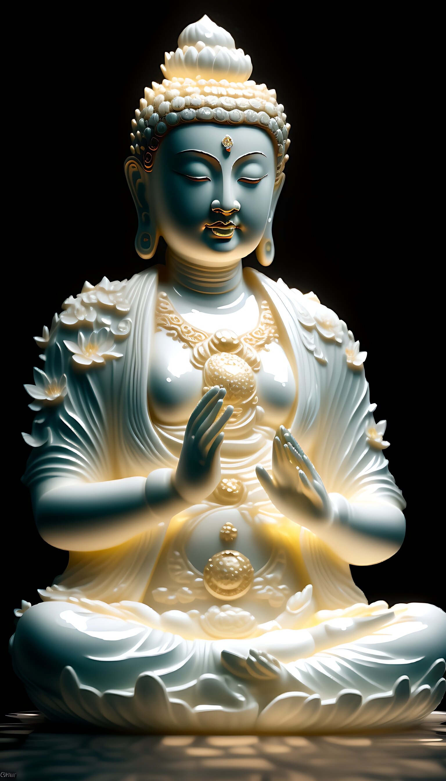 中国风格的佛像,象牙雕刻,分形佩斯利镶嵌,蕾丝,复杂,优雅,高度细致,象牙,艺术胚,蕾丝,由阮佳和greg rutkowski创作,v1