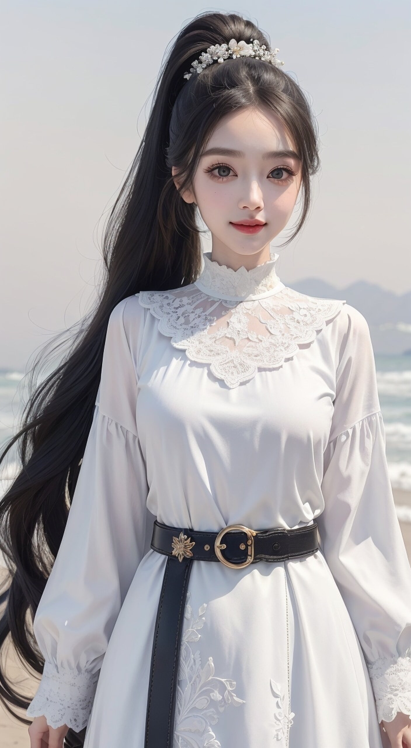 大眼睛,眼睛很大,长睫毛,(((长头发,高马尾))),可爱的美女,脸部细节,脸部增强,皮肤很白,精致的五官,美女,(((细腰带))),时尚,微笑,纯色花海做背景,完美的曲线身材,无限细节,超高分辨率,8K,正对观众(点击复制)