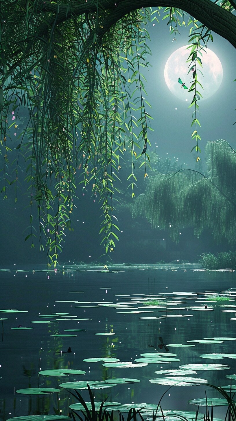 荷塘月色,芦苇漂荡,柳树成荫,青蜓飞舞高清,超广角。在静谧的荷塘中,月光洒在水面上,映出银白色的波纹,如同一片铺展开的银絮。而芦苇随风摇曳,轻轻地漂荡在水面上。柳树的枝条婆娑成荫,给人一种清凉的感觉。在这美丽的夜晚,一只青蜓翩翩起舞,快乐地飞翔在空中。而这一切,都被高清的超广角镜头完美地捕捉下来,真实而生动。