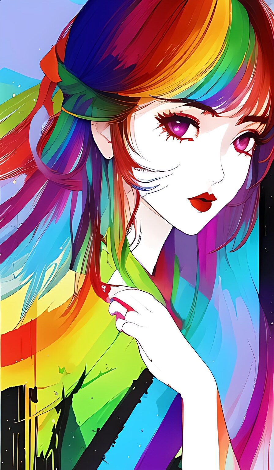 (((rainbow border))),((cropped torso upper body)),((white background)),intricate detail,detailed manga illustration,(((((立绘))))),(古风)颜色飞溅,色彩飞溅,色彩大爆炸,厚涂风格,线条凌乱,线条清晰(高饱和),(色彩丰富)(色彩丰富)色彩斑斓,厚涂风格,线条凌乱,线条清晰,彩虹色渐变高马尾,精致妆容,红唇,闭着嘴巴,长睫毛,大彩虹蝴蝶结,高质量,高清,白色露肩T恤,看向观众,躯干下裁剪,(彩色背景)背景清晰,彩色的泼墨背景,((泼墨))(色彩飞溅),立绘,上半身,油漆飞溅,丙烯颜料,1女孩,正面,满身油漆,画画,油画,((彩虹颜色头发)),渐变色,超短衣,油漆,正在作画,最高画质,最高质量,杰作,solo,景深,皮肤细腻水润可爱的女孩,solo,满是七彩油漆的墙体,脸上有颜料,肩,小腹,渐变,精美的CG,精致美丽的面部特征,华丽的高光,晶莹剔透,绝美的,迷人的,闪耀的,完美,超清,16k(点击复制)