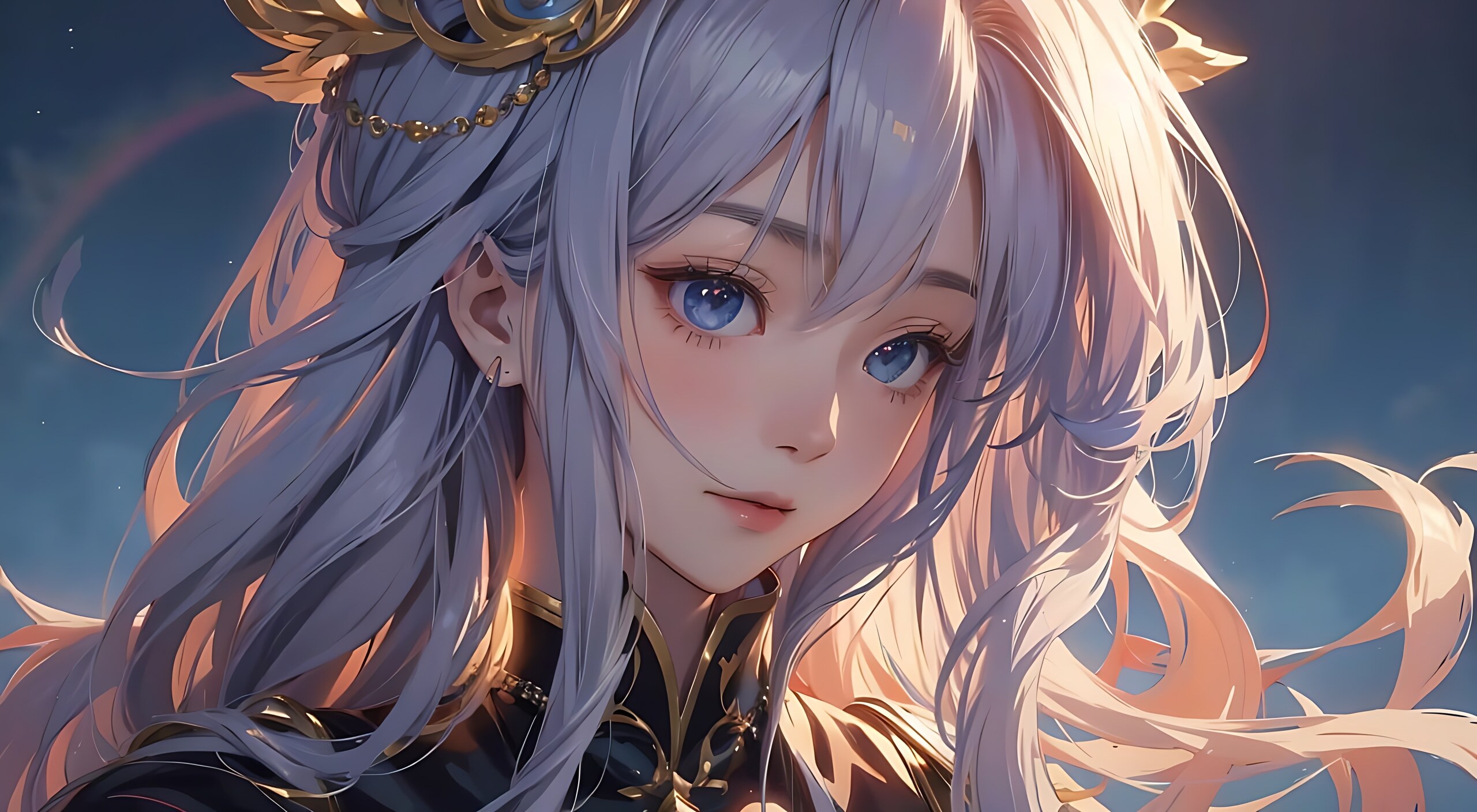 一个长发连衣裙的女孩的特写镜头,动漫女孩与宇宙的头发,幻想艺术风格,美丽的动漫风格,美丽的幻想动漫,美丽的动漫肖像,美丽的动漫女孩,美丽的动漫艺术风格,卡哇伊逼真的肖像,空灵的美,在幻想风格的动漫,惊人的动漫脸部肖像,动漫幻想插图,美丽的人物画,可爱的五颜六色的可爱