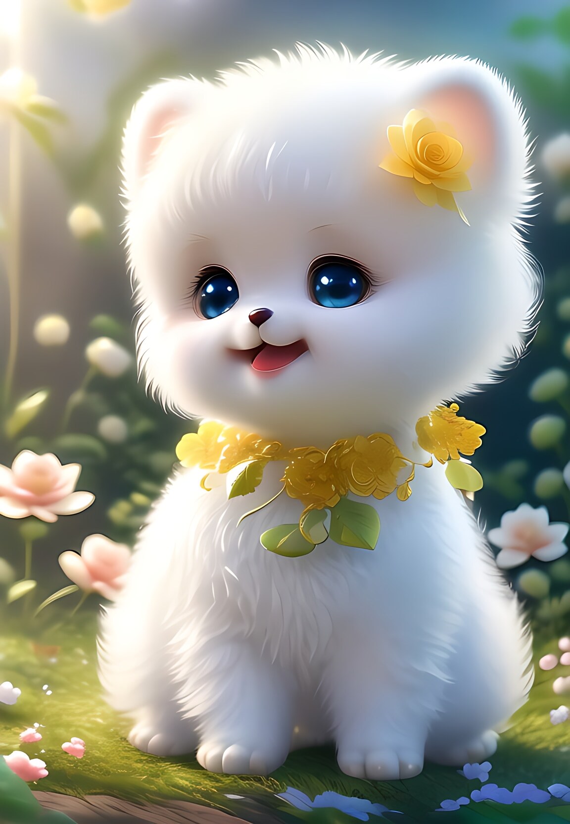 可爱的婴儿皮克斯风格圆乎乎的白色绿色博美犬宝宝,小小的一只,长着可爱的耳朵,开心的大笑,蓝色水灵灵的大眼睛,有浅绿色妖姬色玫瑰花海,黄绿色背景,阳光照射下来,高清迪尼斯,超级细节,戴着漂亮花环超级可爱的萌宠,微笑,精致而精致,难以置信的高细节,带着花环,明亮的颜色,5和矩形渲染,在艺术站流行,华丽,超广角,8k,高清逼真,8k高清逼真的Ural .1可爱的婴儿皮克斯风格圆乎乎的白色黄色博美犬宝宝,小小的一只,长着可爱的耳朵,开心的大笑,蓝色水灵灵的大眼睛,有浅绿色妖姬色玫瑰花海,绿色背景,阳光照射下来,高清迪尼斯,超级细节,戴着漂亮花环